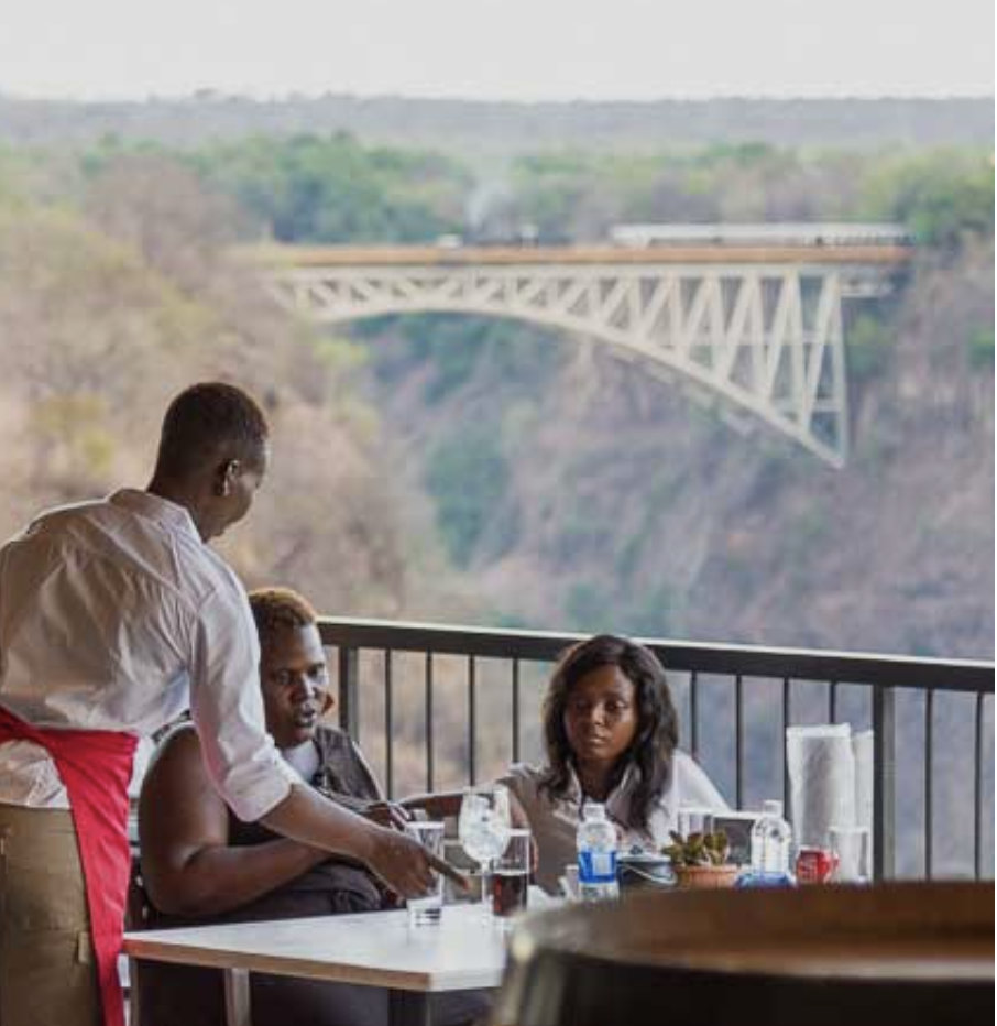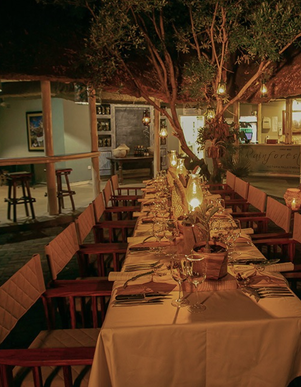 Experience the unique eco-system in the heart of the Victoria Falls Rainforest. Choose from one of our breakfasts, wraps, salads, toasted sandwiches, burgers, famous Zimbabwean steak and fresh Zambezi Bream. Cool off with a much-needed cold drink; or indulge in a rich coffee and heavenly cake. Just one click away!