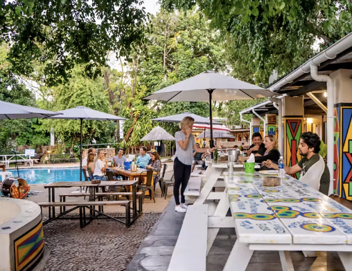 Just 400m from the Victoria Falls – listen to the roar of the water as you dine. Set beside our swimming pools, within the tranquil grounds of Explorers’ Village, this 200 seater restaurant serves fresh, modern cuisine, all your favourite classics, and vegan, vegetarian and gluten-free options. Tuck into a hearty meal or something a little lighter and enjoy our fully stocked bar serving fresh juice, smoothies, beer, wine, cocktails and more – whatever you’re looking for, we have it. Just one click away!